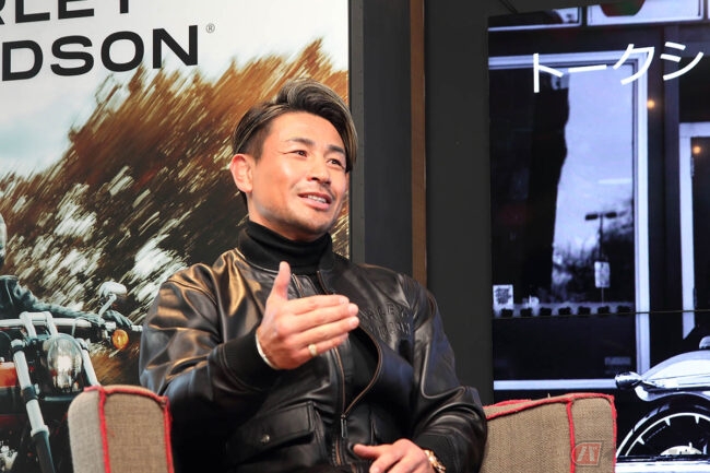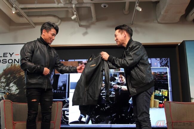 その初日である1月26日、一般展示公開に先駆けてメディアを対象にした『アンボックスセレモニー』が開催され、ゲストとして元K-1MAX王者の魔娑斗氏が来場。ハーレーダビッドソンジャパン代表の野田一夫氏とのトークセッションが行われました。