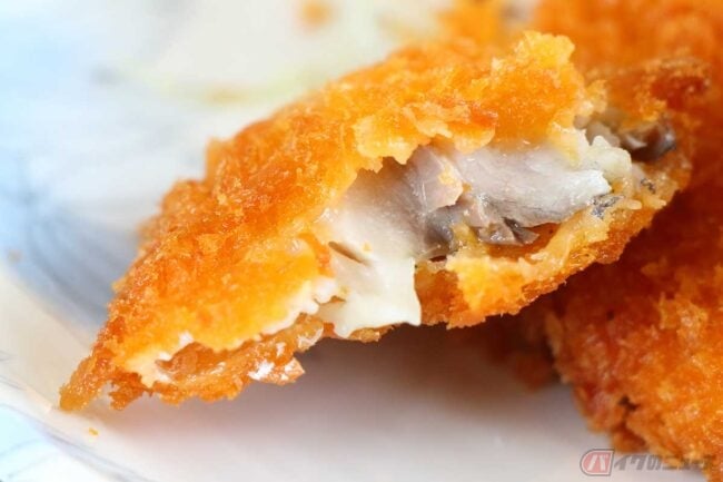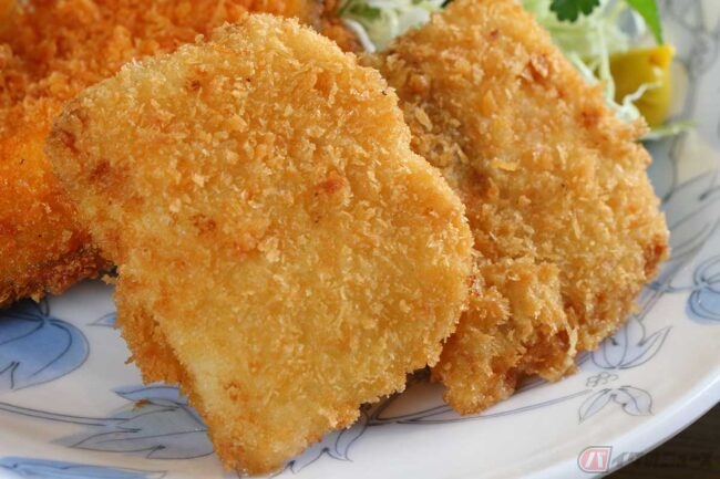 アジフライは一般的なサイズです。揚げ具合はサクサクで良い歯応えです。身は脂が乗っていて美味しいアジです。そして気になっていた「メカフライ」をいただきます。こちらは淡白な味ですが、サクサクのフワフワでアジに負けず良い食感です。ソースよりも醤油が合いそう。