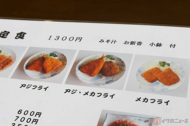 今回なぜここに来たかと言うと、気になるメニュー「メカフライ」があったからです。「メカ」ってなんだ? 機械か? 知らない魚か? と、訊いてみると「メカジキ」のフライだそうです。拍子抜けしましたが「アジ・メカフライ定食」をオーダーします。