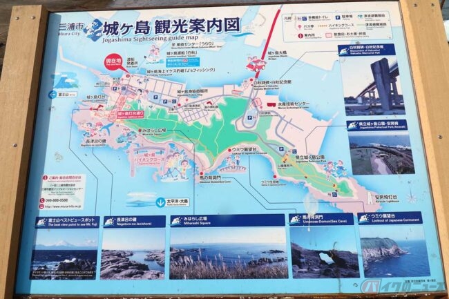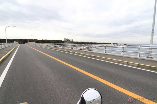 筆者の住む神奈川県には、いくつかの島があります。バイクで橋を渡って行けるメジャーな島は、江ノ島と城ヶ島です。久しぶりの城ヶ島へは、自宅から国道134号を南下し、県道「横須賀三崎線」経由で「城ヶ島入口」交差点を左折、三浦半島の南端部から、三崎港をまたぐ「城ヶ島大橋」を渡ります。