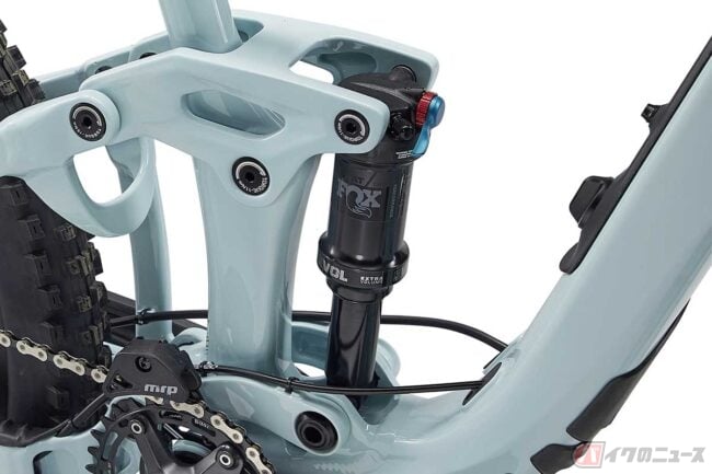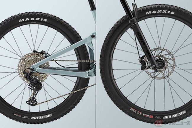 また、フロント29インチ、リア27.5インチの前後異径ホイール専用設計によって、リアホイールトラベルが最適化されるとともに、外径の大きい29インチホイールは安定性と走破性の向上、27.5インチホイールは高い反応性を実現します。