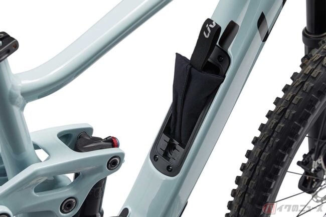 さらにダウンチューブ内側には補給食やライドに必要なツールを収納できるインテグレートストレージシステムを搭載し、すっきりとした薄型のラッチ式開口部には耐水素材を使用したバッグが付属しています。