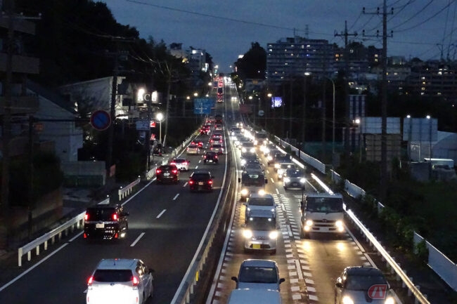一般道では、大きな交差点にある信号機が渋滞の原因であることがほとんど。青信号が点灯する時間の長さは交通量と場所ごとに設定されているのですが、朝夕の混雑しやすい時間帯は、一度の青信号で通過できる通行量を超えてしまい、交差点を先頭に渋滞が発生する流れです。特に右左折レーンが設けられてない道路では、交差点で曲がろうとする車両が後続車の進路を妨げてしまうため、より渋滞を悪化させる原因になっています。