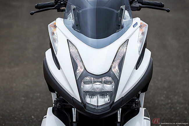 ヤマハ独自の技術である「LMW(Leaning Multi Wheel)」(モーターサイクルのようにリーン(傾斜)して旋回する3輪以上の車両の総称)をフロントに採用するトリシティ・シリーズは、安定感のあるコーナリングと上質なクルージング性能を兼ね備えた3輪スクーターです。
