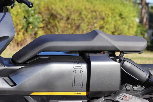 デザインについても先進的です。先代モデルの「C evolution」には、内燃機関のスクーターから受け継いだスタイルが残っていました。しかし「CE 04」はどうでしょう。シート下とモーターやバッテリーが収納されている間に設けられた空間や、足着きのときに太ももが干渉することもいとわないような長方形のシート形状など、「これからのバイク」を感じさせるデザインなのです。