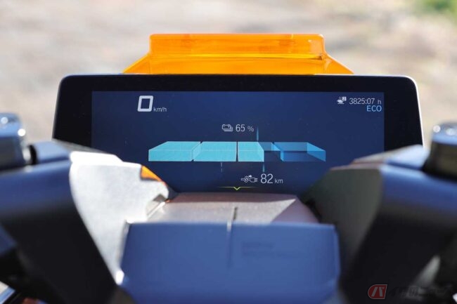 中でも興味深かったのは「ダイナミック」モードです。トルクも高出力で、回生ブレーキもかなりよく利きます。最初こそ、ついつい内燃機関のエンジンブレーキをイメージした操作で回生ブレーキの利きの良さに驚かされましたが、慣れればブレーキを使わずに回生ブレーキだけで止まることもできそうなほど、利きが強いのです。回生ブレーキというのはエンジンブレーキの感覚とは異なっていて、電動バイクの特徴でもあります。