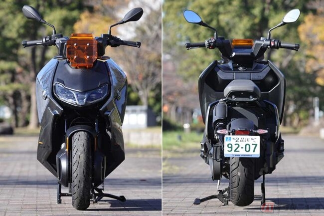「これは電動バイクであることを追求した電動バイクだ」……BMWモトラッドの「CE 04」を走らせて、筆者(伊藤英里)はそう納得しました。走り出して感じたのは、考えられた重量配分です。「CE 04」はBMWモトラッドの電動バイクとして、最初のモデルである「C evolution」よりも車両重量を減らすことをひとつのターゲットとして開発されました。バッテリーの数自体は「C evolution」よりも多くなっていますが、車両重量は「C evolution」が275kgだったのに対し、「CE 04」は231kgと、44kgの軽量化に成功しています。