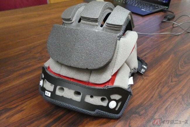 ちなみに、発泡スチロールと言っても一般的な梱包材に使われるような柔らかいものではなく、衝撃を効率よく吸収させるために硬くなっていたり、2層構造になっていたりと、各メーカー独自の技術が投入されています。さらにその内側、つまり頭に直接当たる部分が内装。内装には衝撃吸収能力はほぼ無く、快適性が重視された素材や構造が採用されています。