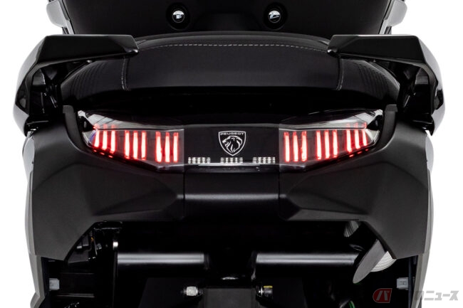 プジョーのアイデンティティである「ライオンズクロー(ライオンのかぎ爪)」の意匠を盛り込んだテールライトや防風効果の高いスモークスクリーン、スマートフォンとBluetooth接続可能な液晶メーターも標準装備されています。