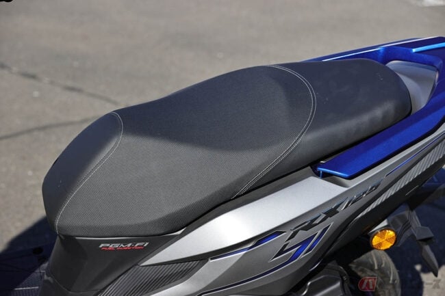 シートは少し固めではありますが座面が広く長いので、座り方の自由度が高い点も嬉しいポイント。車体自体は原2スクーターの中ではコンパクトな方ではありますが、長時間乗っていても体勢が辛くなることはなさそうです。