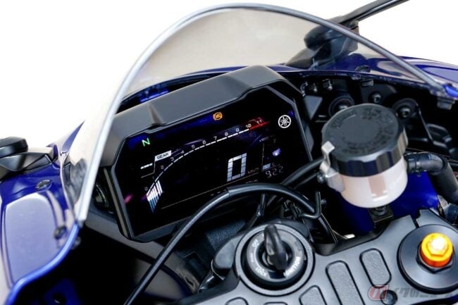 エンジン側のスプロケットの歯数は16Tと同じなので、「R7」が伸び重視、「MT-07」は同じ速度なら到達時間を短く、パワフルに加速するギア比と言えます。