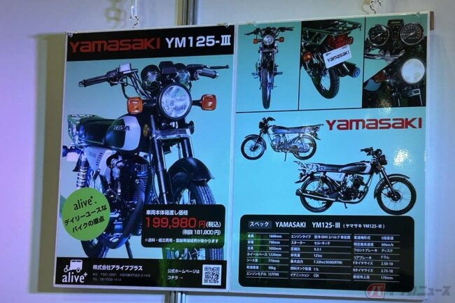 アライブプラスは、2023年3月17日から19日にかけてインテックス大阪で開催された「大阪モーターサイクルショー」で原付二種ネイキッドYAMASAKI「YM125-III」を公開するとともに、国内での販売を開始しました。