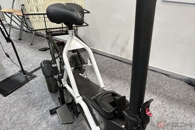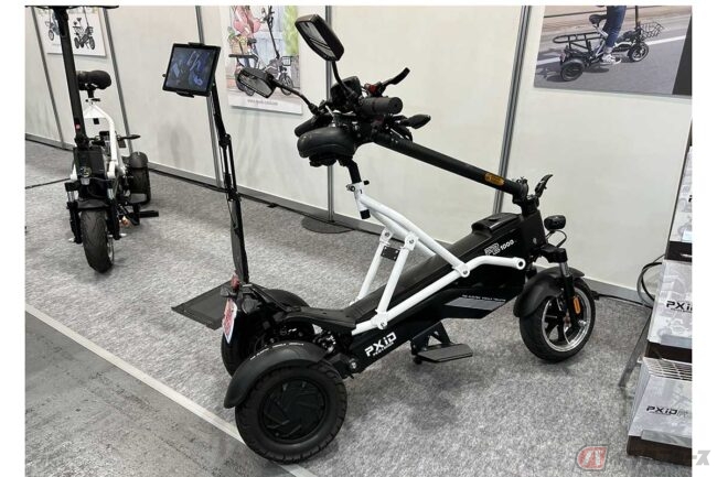 折り畳み式電動スリーター「PXiD-F2」 4月より販売開始予定の後ろ2輪の モデルを一般公開【大阪MCS2023】
