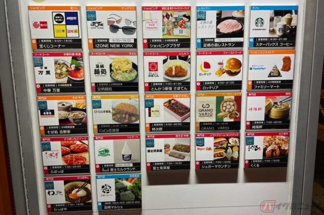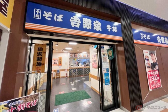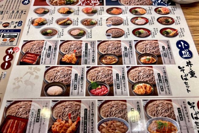 東名高速道路「EXPASA足柄(足柄SA)」(下り)には、フードコートと少し離れたところに「そば処 吉野家」があります。たまには食べ慣れたチェーン店の味にしようと丼セットのメニューを見たところ、想像以上の種類の豊富さに迷ってしまいました。