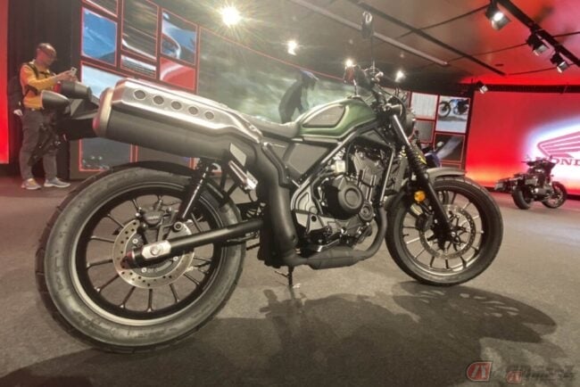 2022年11月に開催されたバイクの見本市「EICMA」で公開されたCL500は、ホンダのクルーザーモデル「レブル500」と同じく最高出力46PS/8500rpm、最大トルク43N・mを発揮する排気量471ccの直列2気筒エンジンを搭載するスクランブラースタイルのモデルです。