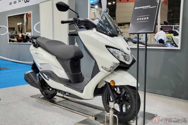 スズキ「e-BURGMAN」登場!? 原付二種電動スクーターによる実証実験を都内で実施