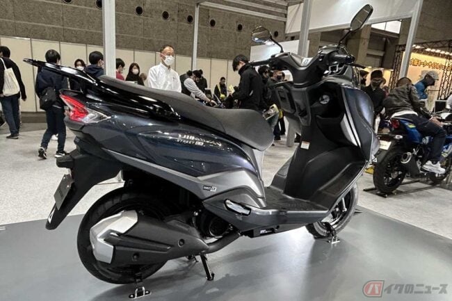使用されるスクーターは原付二種電動スクーター「e-BURGMAN(イー・バーグマン)」は、大阪モーターサイクルショー2023で披露され、3月27日に発売したばかりの「バーグマンストリート125EX」と同様のスタイルを採用した車両で、最高出力4.0kW、最大トルク18Nmを発揮し、航続距離(60km/h定地走行)は44 kmを実現しています(スズキ社内テスト値)。