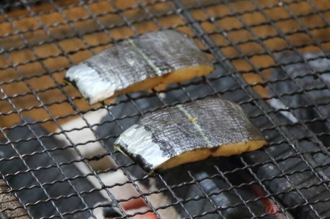 店名の通り、魚や肉の炭焼きが看板料理で、この日オススメの「スミヤキの炭焼き」が焼き上がってきました。甘くないみりん干し、という感じでしょうか。塩味が効いていてご飯のおかずに最適です。
