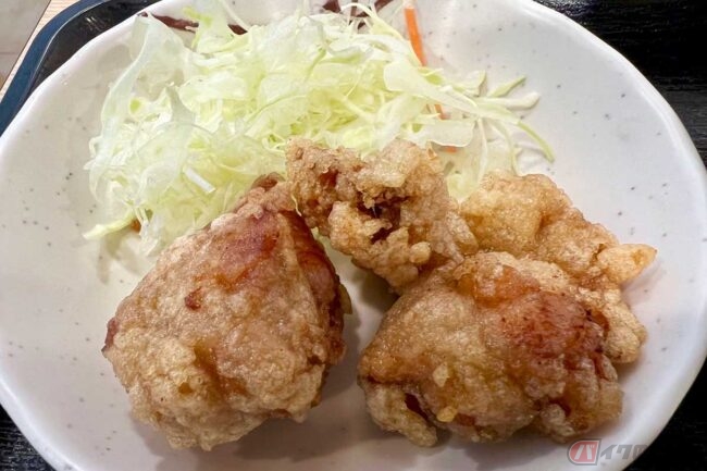 ということで、夜に立ち寄った「鮎沢PA」でオーダーしたのは「マーボー定食」(850円)です。出来上がりを見ると、いつも通り量多め! メインの麻婆豆腐に加えて唐揚げが2個、油揚げが入ったみそ汁と漬物、そして多めのご飯という布陣です。