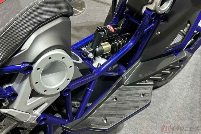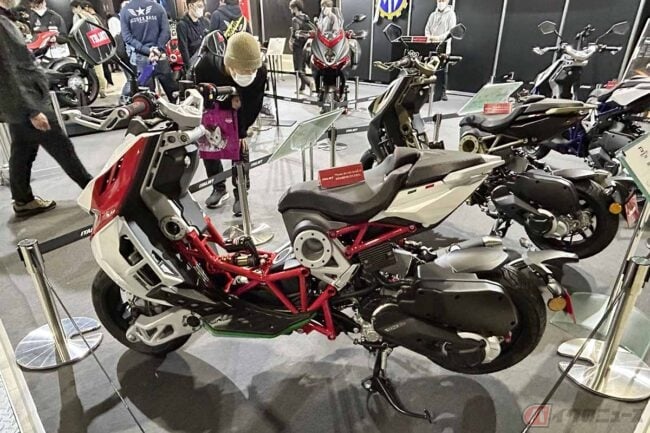 アルミダイキャスト製のプレートを備えたトレリス形状(パイプを三角形状につなぎ合わせた形状)のフレームが特徴となるドラッグスターは、イタリアで開催されたバイクの見本市「EICMA2018/2019」で市販予定モデルが発表され、2020年に市場に登場した個性派スポーツスクーターです。