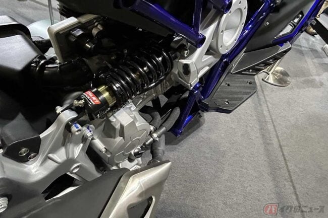 原付二種区分の125ccモデル(最高出力12.5HP)と軽二輪区分の200ccモデル(最高出力17.5HP)が用意されたドラッグスターでは、イタルジェット独自のIndependent Steering System=I.S.S.(インデペンデント・ステアリング・システム)を採用することで、かつて販売されていたヤマハ「GTS1000」のような片持ちのハブセンターステアリングが実現されています。