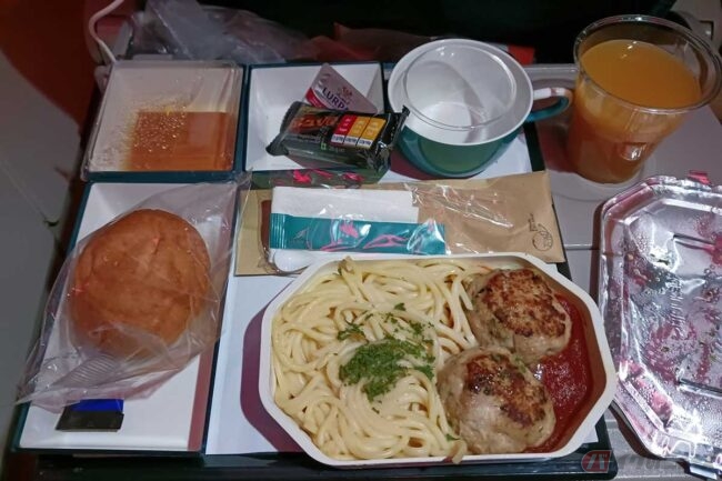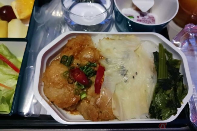 辛い物が大の苦手な筆者にとってはこれがなかなかの強敵で、口に入れた瞬間に衝撃が走り、ちょっとだけ涙が出ました。大人なのに。機内食は未知の食べ物が出ることもありますから、驚くこともしばしば。もちろん、それも楽しいわけですけどね。