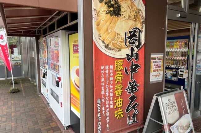 ここのフードコートは「豚肉野菜炒め定食」(810円)が看板メニューらしく、こちらも気になります。券売機を見る限り揚げ物が多い印象です。また、店頭には豚骨醤油スープの「岡山中華そば」の看板が出ていたので、こちらも機会があれば食べてみたいと思います。