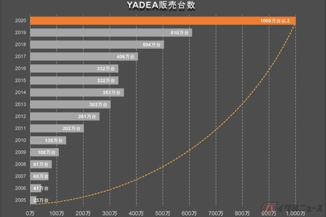 2001年の創業以来、世界100ヶ国に電動モビリティを販売するYADEAは、電動モビリティの販売台数6年連続(2017年~2022年)で世界一を記録する香港上場企業です。