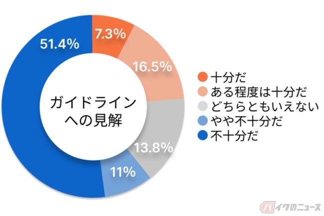 事前に交通ルールを確認するテストやルールを解説した動画視聴を進めるガイドラインを策定する方針について尋ねたところ、「やや不十分だ」「不十分だ」を合わせると62.4%という結果となりました。