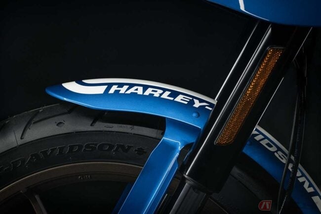 フューエルタンクの左部には、Moto America King of the Baggers シリーズに参戦する「ハーレーダビッドソンScreamin’ Eagleファクトリーチーム」のモーターサイクルにも採用されているハーレー初のオリジナル・レース・マスコット「Johnnie the pig (ジョニー・ザ・ピッグ)」が描かれています。