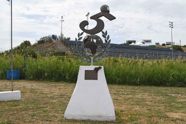 レースファンの盛り上がりを感じる前の木曜日、まだ静かなヘレス・サーキットのコースサイドをぐるりと歩いていると、いたるところにモニュメントが設置されていることに気が付きます。数々のモニュメントを見るだけでも、ライダーへのリスペクトが感じられました。