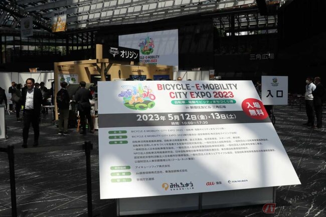 電動アシスト自転車(e-BIKE)や電動キックボードをはじめ、電気自動車、電動スクーターなど、これからのモビリティの中心になるかもしれない多彩な電動の乗りものが一堂に集結した展示会『BICYCLE-E・MOBILITY CITY EXPO 2023 ~自転車-電動モビリティまちづくり博~』が、2023年5月12日(金)、13日(土)に東京・西新宿の新宿住友ビル三角広場で開催されました。
