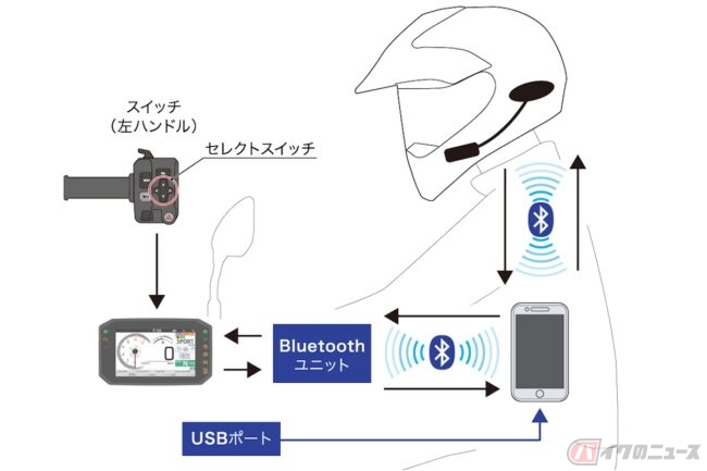 Bluetoothによってスマートフォンとの連携もでき、ハンドルスイッチやヘッドセットを通じたライダーの音声などで、マップやミュージックアプリなどの操作を可能としているのも先進的としか言いようがありません。
