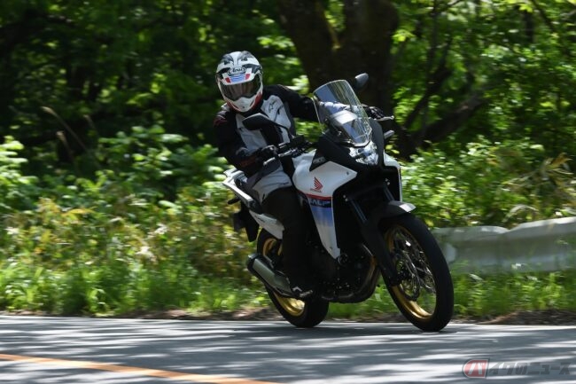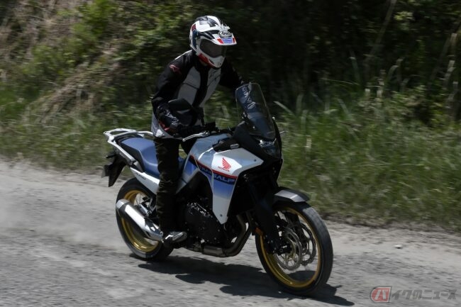 「大型のアドベンチャーモデルだと、なかなかそうはいかない。Uターンに苦労しますから。その点、今回乗った新型トランザルプはハンドル切れ角が大きくて足つき性も良く、このクラスにしては車体も軽い。引き返すのが億劫ではないから、ダートの脇道にもどんどん入っていけました!」