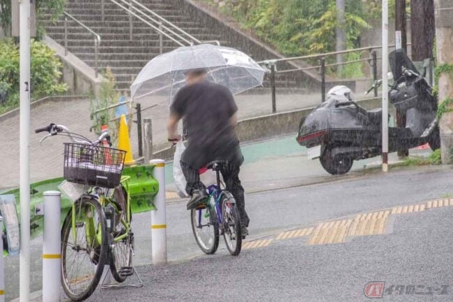 すでに多くの人が知っている通り、傘を差しながらの運転は、分かりやすい「ながら運転」でしょう。最近ではあまり見かけなくなった感もありますが、傘さし運転は片手を塞ぎ、予期せぬ動きで視界を遮ってしまうこともあり、雨というシチュエーションも重なって危険度がかなり高くなります。