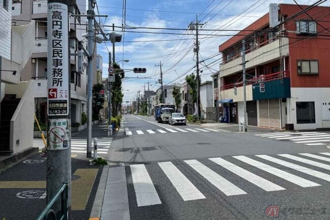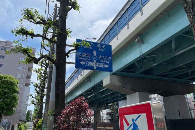 そのまま直進したくなりますが、ここで左折、しばらく進み、2つ目の信号を右折して「人見街道」に入ります。ただ、このあたりは道幅がかなり狭くなるので、不安な場合は「井の頭通り」を経由して安全な道で「人見街道」に乗りましょう。