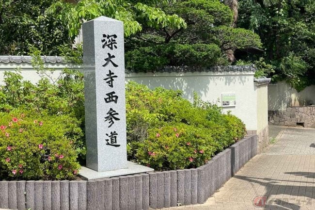 「武蔵境通り」まで進み「野崎八幡前」交差点を左折、そろそろ足がきつくなってきたかもしれませんが、もうひと踏ん張り漕ぎ進むと左手にゴールである「深大寺西参道」の石碑が現れます。そこを左折して直進すれば、目的地の「深大寺」に到着です!