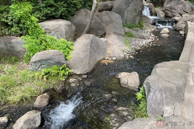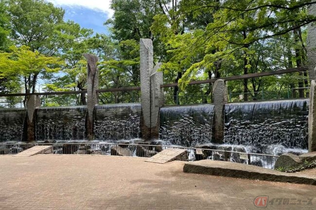 最初の難関をこえて「青梅街道」を突き進み、丸ノ内線の「東高円寺駅」あたりで左手に「杉並区立蚕糸の森公園」が現れます。環状7号線の手前に位置するこの公園では滝や小川など、都会のオアシス感が味わえます。このあたりまで順調に進めば30分ほど。周囲にコンビニもあるので、一息つくのにぴったりです。