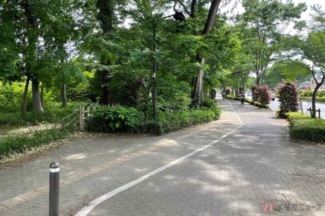 ここからラストスパートです。歩道も一気に広くなり、自転車走行レーンも用意されているのでのびのびと走ることができます。途中には木々に囲まれたエリアなどもあり、スタート地点の新宿から「けっこう遠くまで来たかも」と感じられます。