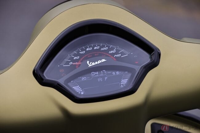 車両重量は163kgで取り回しをする時は、車両の重さをずっしりと感じます。ベスパの伝統的なスチールモノコックボディを使用していることもあるのでしょうか。重さはあるけどこのずっしり感を味わうほど、「あ、ベスパだなぁ~」と実感するんです(笑)