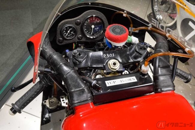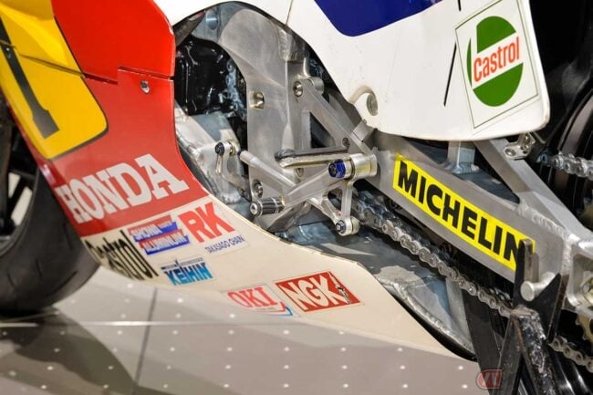 初代「NSR500」は低重心化が開発テーマとなっており、トラクションコントロールなど無い当時、ハイパワー過ぎるがゆえのウイリーや後輪のスリップを軽減するため、低重心化は車体設計の要でした。