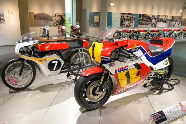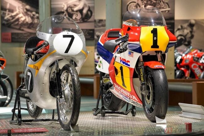 当時、レースのある週末は見ている側も「勝つことが最大の目的だ」と一喜一憂するものでした。あれから数十年経ったいま、タイトルを獲得できなかった初代「NSR500」が、世界GP初優勝を果たした「RC143」と共に特別なスペースに展示されています。