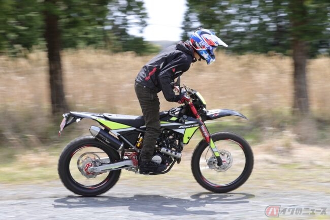 シンプルなリヤセクションや、上を向くアップマフラーもホンモノを感じさせ、車体価格99万円(税込み)も納得がいきます。用途の多い125ccオフローダー、海外ブランドなら新車で手に入れることができるのです!