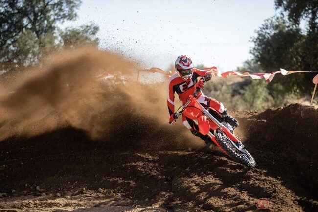排気量449.7ccの単気筒エンジンを搭載するCRF450Rは、「勝つための戦闘力」を追求したモトクロス競技専用のモデルです。