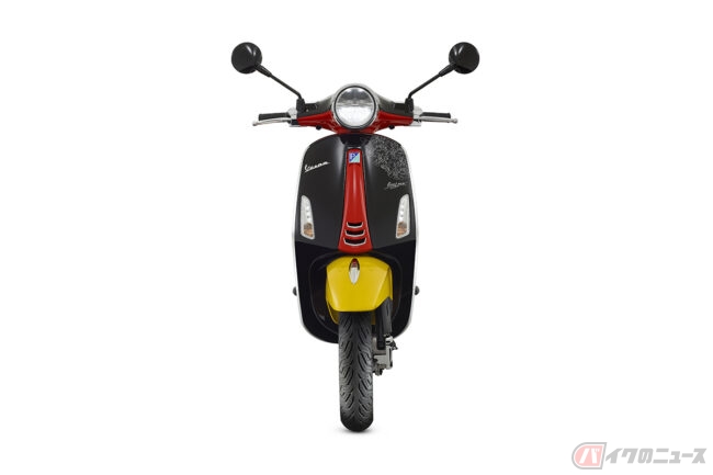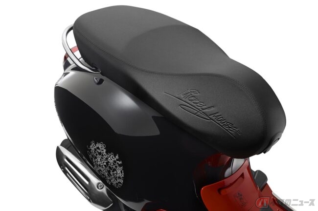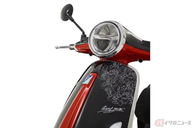 ベスパ「プリマベーラ」をベースにしたディズニー・ミッキーマウス・エディションは、ディスニーのシンボル的キャラクターであるミッキーや同キャラクターが着用する服を連想させるブラックやレッド、イエローを車体色に使用した特別仕様車です。