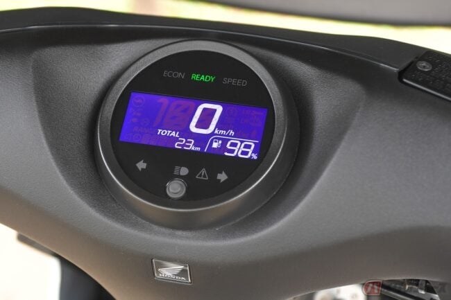 反転液晶表示のフルデジタルのメーターもシンプルでわかりやすく、文字も大きく見やすいのがとてもいい♪