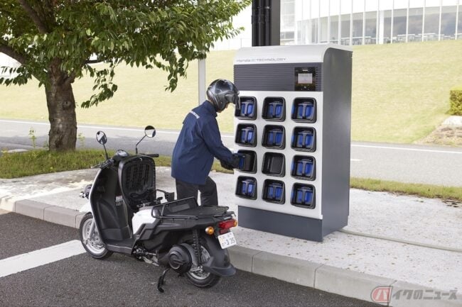 ホンダ、カワサキ、スズキ 、ヤマハの国内2輪メーカー4社と、エネルギー業界大手のENEOSホールディングスが組んで生まれたバッテリーシェアリングサービス。電動二輪用の共通仕様のバッテリーがシェアできるのだそう!