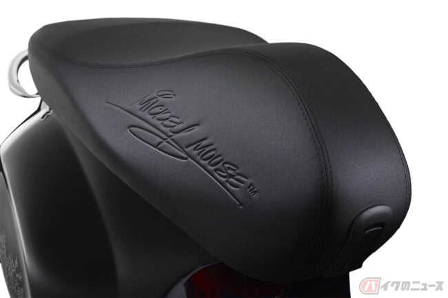 イエローのホイールはミッキーマウスの靴を連想させ、ブラックのミラーは特徴的な丸い耳を彷彿。 車体の両サイドとフロント部分にはミッキーマウスのシルエットを描いたグラフィックが施され、さらにシートとフロントシェルにはミッキーマウスのサインがあしらわれました。