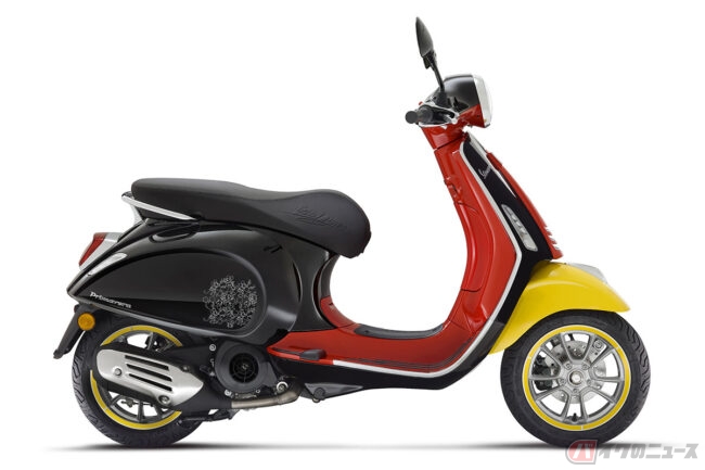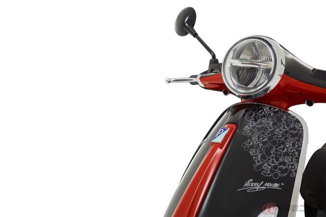 今回のコラボレーションでは、ベスパ プリマベーラの125ccと150ccが、何十年にも渡ってウォルト・ディズニーのもっとも有名なマウスを象徴してきたカラーと同じ、ブラック、レッド、ホワイトそしてイエローのカラーリングを纏います。