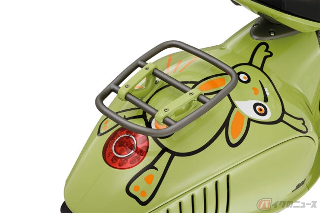 ペースとなる946は、オートクチュールのアトリエのような専用の生産ラインで生み出され、今や真のコレクターズ アイテムとなったイタリアを代表するモデルですが、 この特別なベスパをベースにした限定車では、クラシックなベスパグリーンにリワークし、ボディにはかわいらしいウサギのシルエットが描かれ、干支のキャラクターであるウサギらしい遊び心や陽気さ、自然を愛する気持ちが象徴されています。